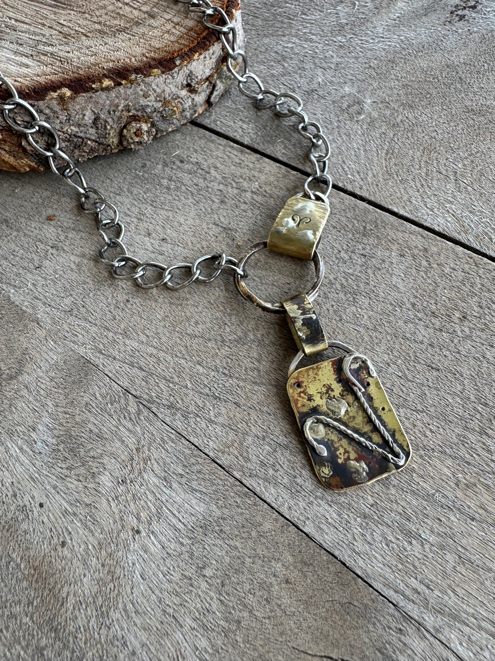 Strong, raw metals and a slightly weathered finish give this necklace that signature Harmanax feel: artistic, earthy, and a little rebellious.