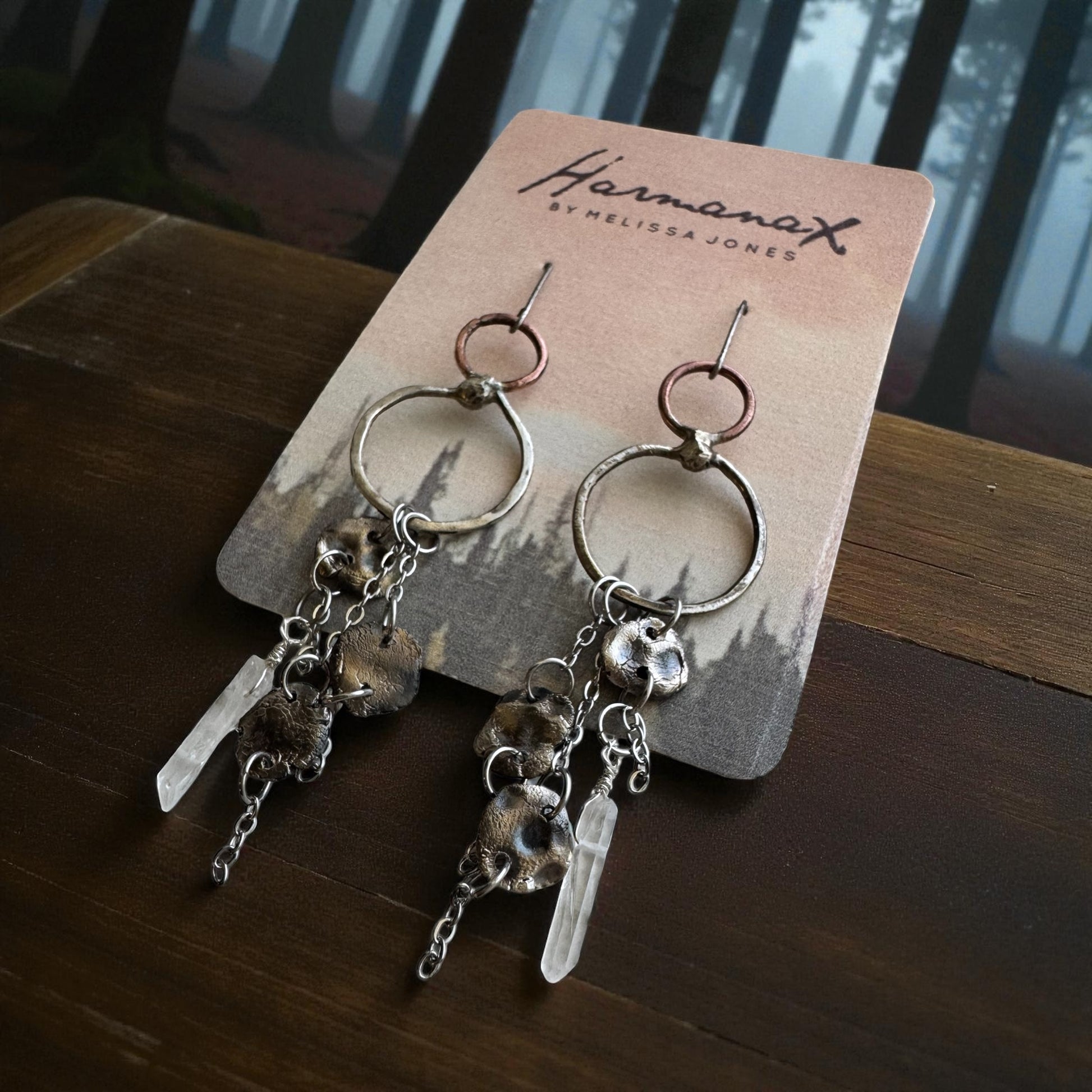 Capture your edgy style with these sterling silver and copper crystal earrings. Featuring quartz crystal points, they combine raw natural beauty with a bold rocker vibe, perfect for adding a striking accent to any outfit. Durable and distinctive, these earrings make a confident statement wherever you go.